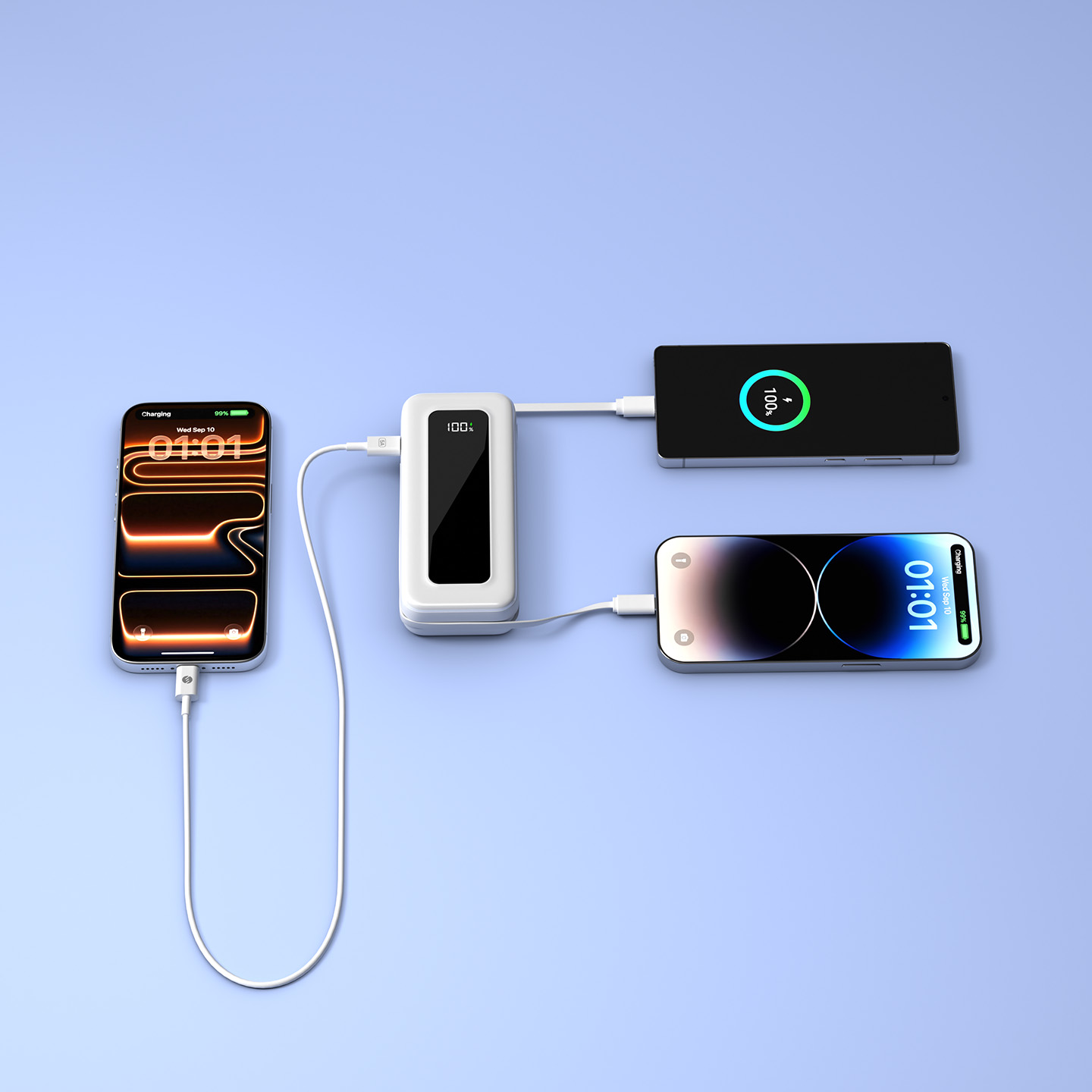 20000mAh PD45W Type-C+Lightning Kablolu Beyaz LCD Taşınabilir Pil Şarj Cihazı Powerbank