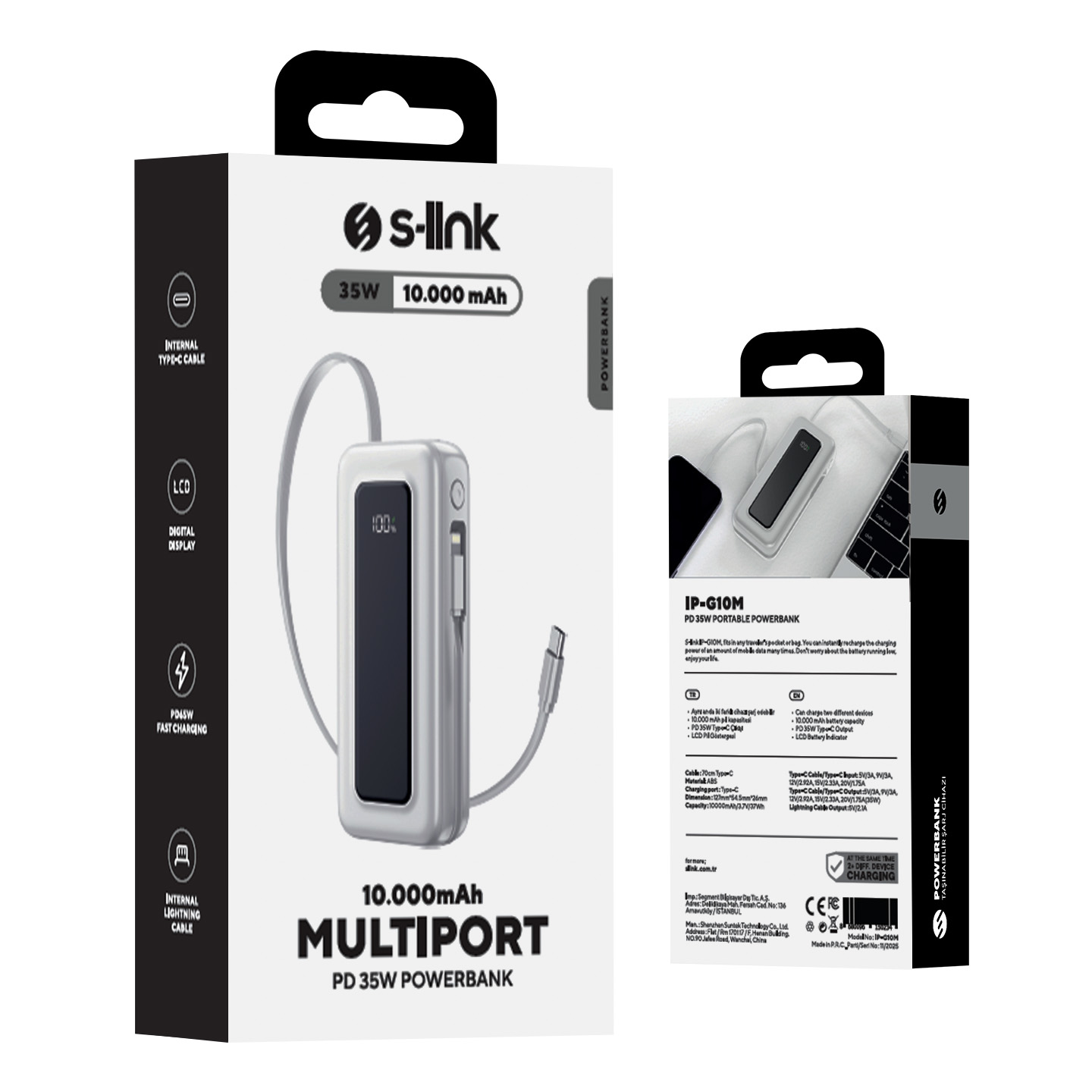 10000mAh PD35W Makaralı Beyaz LCD Taşınabilir Pil Şarj Cihazı Powerbank