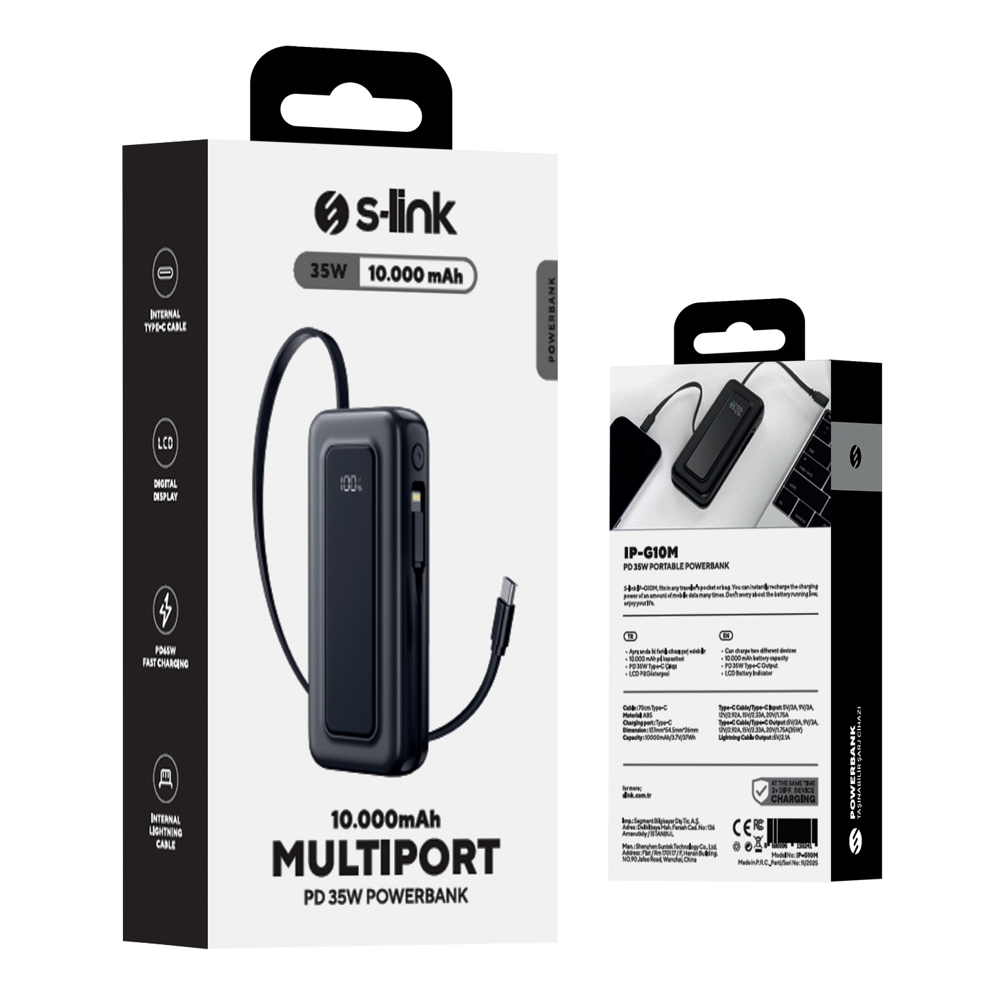 10000mAh PD35W Makaralı Siyah LCD Taşınabilir Pil Şarj Cihazı Powerbank