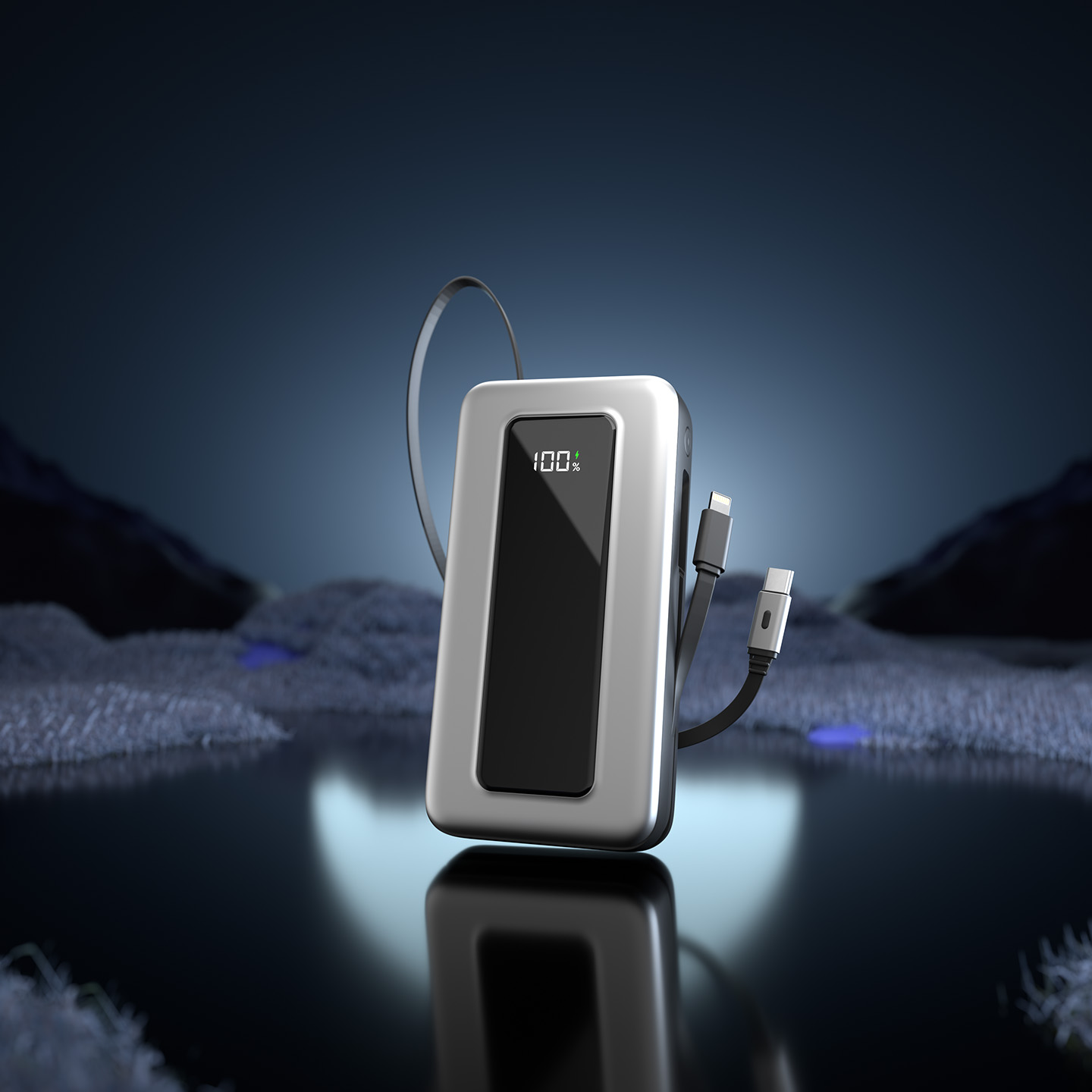 20000mAh PD45W Type-C+Lightning Kablolu Beyaz LCD Taşınabilir Pil Şarj Cihazı Powerbank