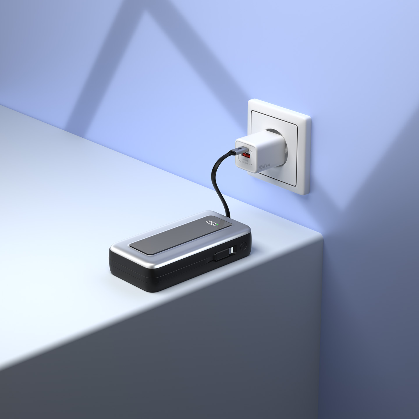 10000mAh PD35W Makaralı Siyah LCD Taşınabilir Pil Şarj Cihazı Powerbank