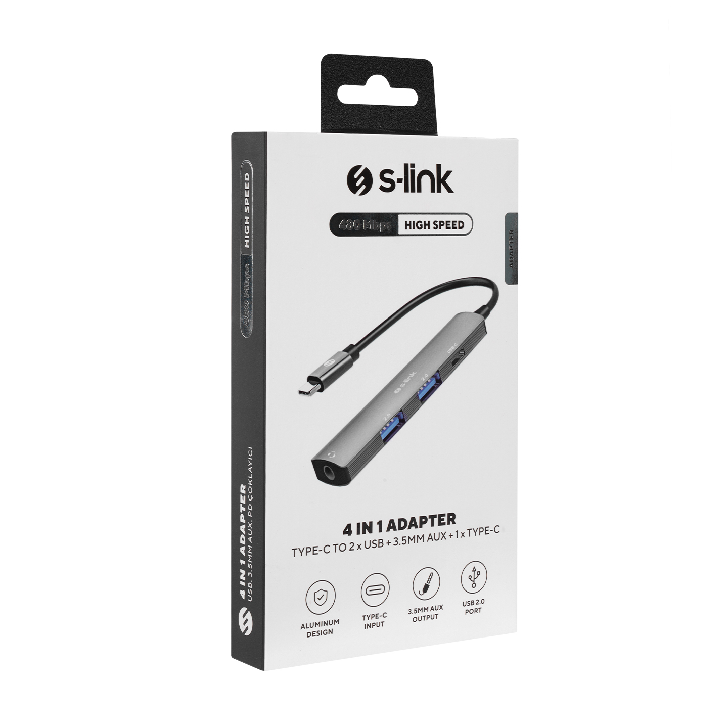 4 in 1 Gri Metal TypeC to 2*USB2.0 USB-C, 3.5mm Aux Port Type C Adaptör