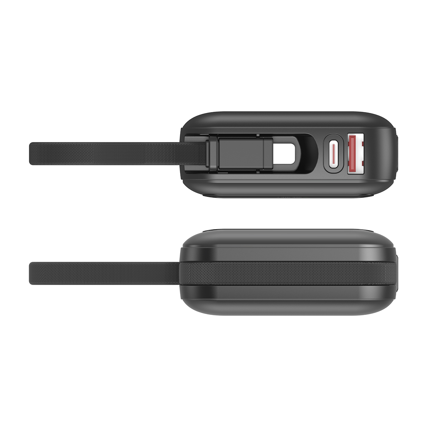 10000mAh PD20W+QC3.0 Dahili Kablolu Siyah LCD Taşınabilir Pil Şarj Cihazı Powerbank